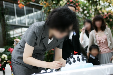 | (HARUNA)『さあ、一体でも落としたら負けですよ』 軽くプレッシャーを与えながら実況はつづく。この調子だとかなり最後までもつれるかと思い、 (HARUNA)『最後の4つくらいが勝負です。まだまだいけるでしょう』 などと話した瞬間、MAさんの置いたあとの台が大きく揺れ、一気に4〜5体ほどのペンギンが崩れ落ちた。会場から大きな歓声があがる。 (HARUNA)『ああ〜! 勝ったのは、MUさんです!』 |