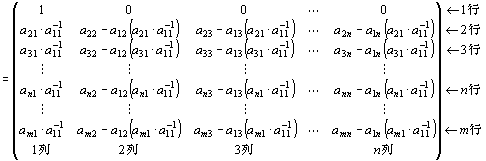 それから、(m,n)型行列Aの(1,1)成分を要として第1列も掃き出す。