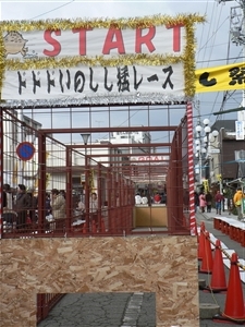 当日のメインイベントは「ドドドいのしし猛レース」です。子供のいのしし(うり坊)3頭が競争を行います。