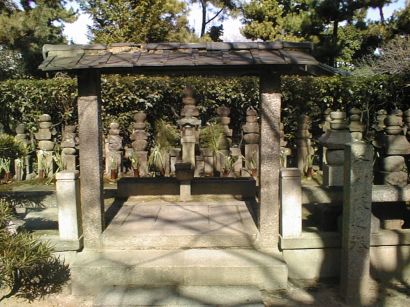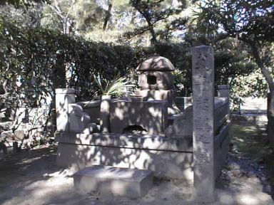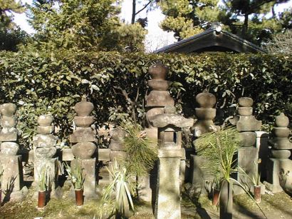 千家の墓。中央の五輪等が利休の墓。右が表千家、左が裏千家。