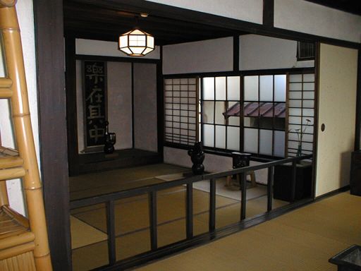 二階、吹き抜けから一階の囲炉裏あたりを望む。