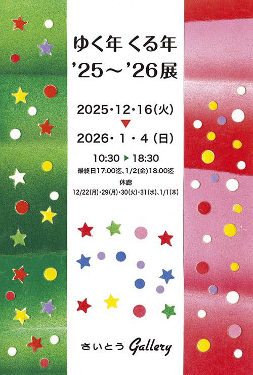 休廊:12/22(月)・29(月)・30(火)・31(水)、1/1(木)