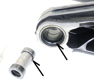 いるスイングアームピボットべアリングのインナースリーブ(黒い部分)をフレームに押し付けるだけの構造です。じゃあ、インナー