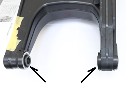 スイングアームの左右方向の動きを規制するかのように思えますが、まったくそんなことはできない構造でした。