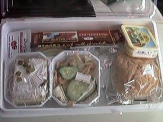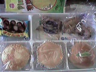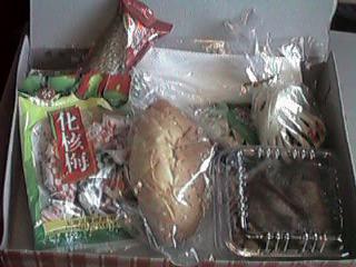 北方航空にはこの他にも1時間くらいの路線に多数乗りました、これとほぼ同じでした。パンとサラダ、ケーキとチョコレート等のお菓子類です。この路線で特徴的だったのは、ケース入りの飴でした。何種類かあったようで、「ぶどう」や「みかん」があったようです。