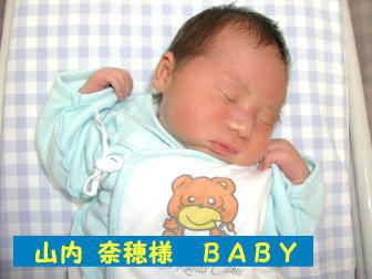 山内 奈穂様ベビーの出生記録 ●出生日時 2002.2.6.水曜日 PM7:28 ●出生時体重 3534g ●身長 48.5cm ●性別 男児 |