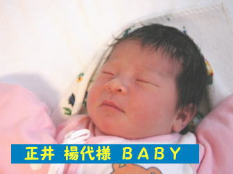 正井 楊代様ベビーの出生記録 ●出生日時 2003.4.23水曜日 PM1:50 ●出生時体重 3444g ●身長 50.0cm ●性別 女児 |