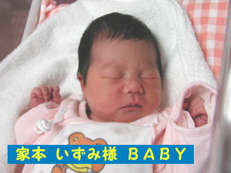 家本 いずみ様ベビーの出生記録 ●出生日時 2003.6.9月曜日 PM1:09 ●出生時体重 3294g ●身長 50.0cm ●性別 女児 |