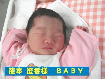 籠本 澄香様ベビーの出生記録 ●出生日時 2003.6.18水曜日 AM4:25 ●出生時体重 3426g ●身長 48.5cm ●性別 女児 |