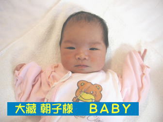 松田 香織様ベビーの出生記録 ●出生日時 2003.12.31水曜日 AM0:35 ●出生時体重 3368g ●身長 50.0cm ●性別 男児 |