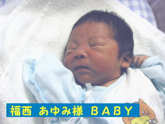 前倉 祐子様ベビーの出生記録 ●出生日時 2004.1.10土曜日 AM2:19 ●出生時体重 3358g ●身長 49.0cm ●性別 男児 |