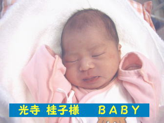 光寺 桂子様ベビーの出生記録 ●出生日時 2004.1.31土曜日 PM12:32 ●出生時体重 3216g ●身長 48.5cm ●性別 女児 |