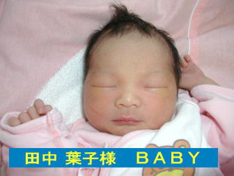 田中 葉子様ベビーの出生記録 ●出生日時 2004.6.15火曜日 AM0:10 ●出生時体重 3452g ●身長 49.5cm ●性別 女児 |