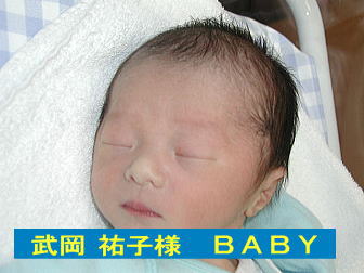 武岡 祐子様ベビーの出生記録 ●出生日時 2004.6.24木曜日 PM4:43 ●出生時体重 2566g ●身長 49.0cm ●性別 男児 |