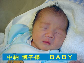 中納 博子様ベビーの出生記録 双子のお一人目です。 ●出生日時 2004.10.21木曜日 PM1:40 ●出生時体重 2956g ●身長 47.8cm ●性別 男児 |
