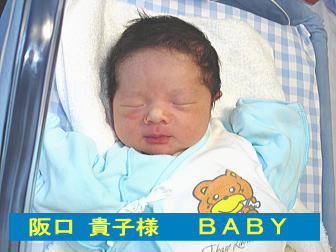 阪口 貴子様ベビーの出生記録 ●出生日時 2005.8.19金曜日 PM6:55 ●出生時体重 3238g ●身長 50.0cm ●性別 男児 |