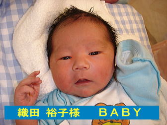 織田 裕子様ベビーの出生記録 ●出生日時 2006.6.12月曜日 AM3:18 ●出生時体重 3218g ●身長 50.0cm ●性別 男児 |