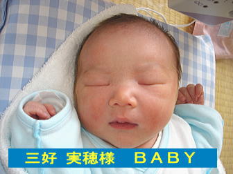 三好 実穂様ベビーの出生記録 ●出生日時 2006.6.12月曜日 PM11:12 ●出生時体重 3670g ●身長 50.5cmg ●性別 男児 |