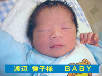 渡辺 律子様ベビーの出生記録 ●出生日時 2006.6.27火曜日 AM8:52 ●出生時体重 3530g ●身長 50.2cm ●性別 男児 |