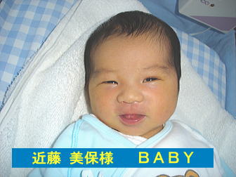 近藤 美保様ベビーの出生記録 ●出生日時 2006.11.5日曜日 AM9:31 ●出生時体重 3154g ●身長 49.2cm ●性別 男児 |