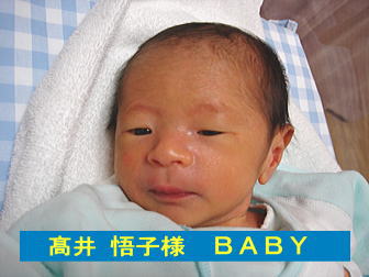 井 悟子様ベビーの出生記録 ●出生日時 2006.11.8水曜日 PM3:47 ●出生時体重 2774g ●身長 51.0cm ●性別 男児 |