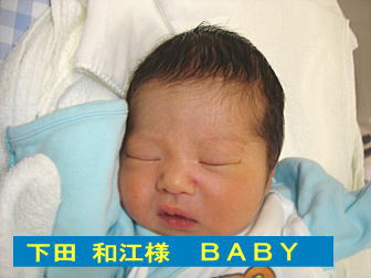下田 和江様ベビーの出生記録 ●出生日時 2006.12.9土曜日 PM8:49 ●出生時体重 3112g ●身長 48.4cm ●性別 男児 |