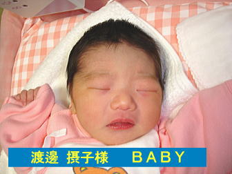 渡邊 摂子様ベビーの出生記録 ●出生日時 2006.12.20水曜日 PM11:12 ●出生時体重 2730g ●身長 47.8cm ●性別 女児 |