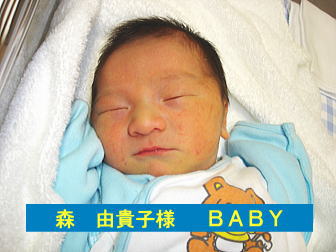 森 由貴子様ベビーの出生記録 ●出生日時 2007.3.31土曜日 AM8:27 ●出生時体重 3206g ●身長 49.4cm ●性別 男児 |
