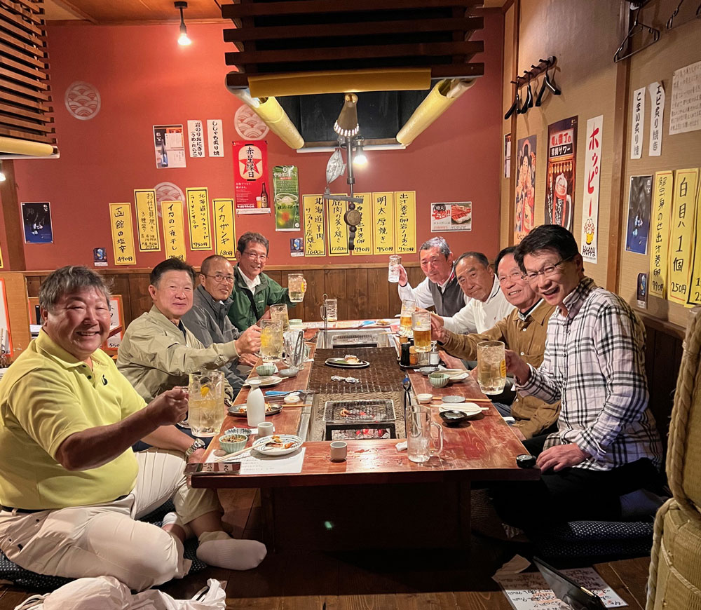 昨日は皆さんシビレルゴルフお疲れさんでした。 谷島くんその中耐えて優勝おめでとう。 島崎くん飛び過ぎです、小生の頭の上を通り過ぎて行きましたよ。 忘年会はいつもながら大澤くんの饒舌で楽しませていただきました。 斎藤くんは無事御帰還しました。