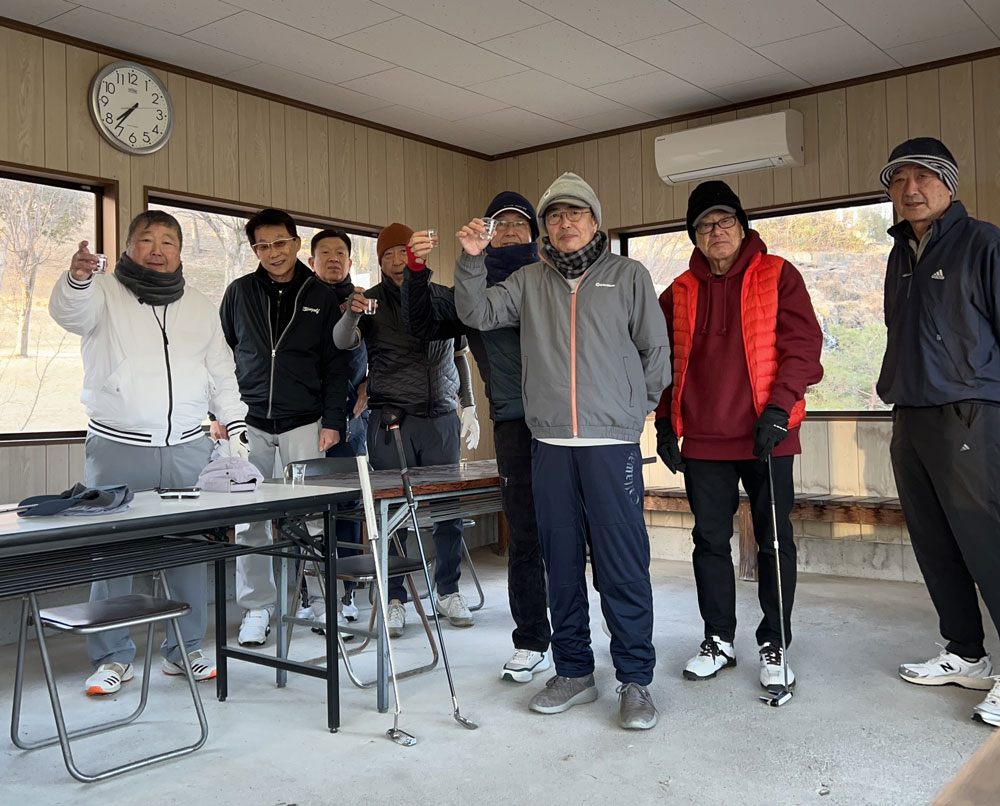 皆さん北風の中お疲れ様でした。話をすればあっちが痛いこっちが痛い。 それでも元気にゴルフが出来る。素晴らしいことだと思います。 いつまでも元気で続いてほしいと思います。ところで小生昨年の6月以来の優勝をいただきました。 ボールは4個無くしたのですがなんとか神の力でカバーすることができました。 これからも精進いたしますのでこれからも遊んでくださいね