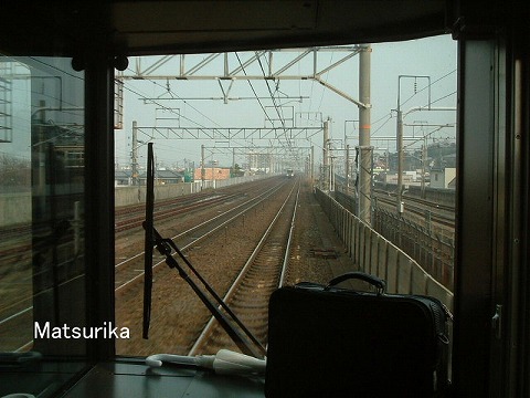 橋を渡り終えると、再び新幹線寄りに戻る。線路移動のカーブ部分にはちゃんとカントも設けられていて、 巡航速度の120Km/hで通過してもあまり揺れを感じない。