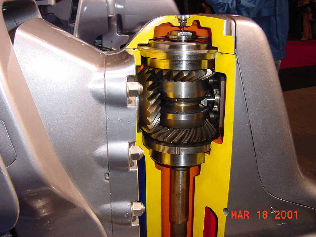 左側のギヤが回転中は常時上下のギヤとコーンは回転してますが中央にある金色の