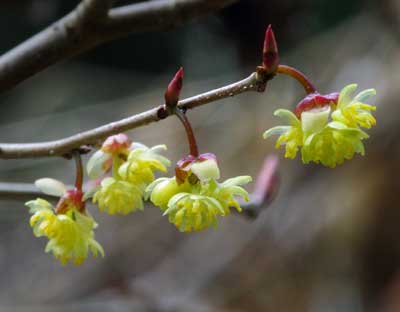 アブラチャンクスノキ科の落葉低木で雌雄異株。 低木とはいっても、株立ち状に成長し人の背丈よりは高くなる個体が多い。 日本では東北地方から九州にかけて分布。和名に「チャン」がついているために、植物の日本語名としては違和感を覚える響きで、漢字では油瀝青と書く。 気になる名前の由来については、種子から油を採取したり樹皮に油分を多く含むためとか、さらに瀝青の中国語読みがチャンだとするなど諸説がある。 高尾山では山中のほぼ全域で見られるが、沢沿いの湿り気のある場所を好むようだ。 山が新緑に覆われる前の3月ごろに山道を歩くと、ところどころで枝先に小さな淡黄色の花の塊をたくさんつけた木が目に留まる。 それはアブラチャンだったり、ダンコウバイだったりする。 どちらの花も散形花序で、複数の花がかたまって咲く様子は良く似ているが、アブラチャンには花柄があるので判別できる。 2021/3/20 日影沢で撮影 |