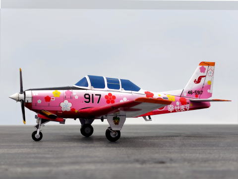 基本構造はT-3と同じで、比較的組み立てやすいものですが、新しい機首の部分などは組立に少し注意が必要です。標準塗装の機体に加えて、防府北基地の