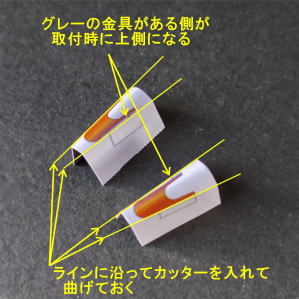 排気管取付板は余白付きの状態でエッジにカッターを入れてシャープに折り曲げます。