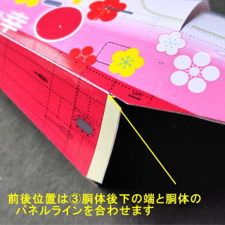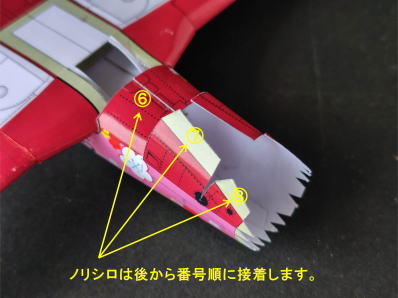 10.胴体前下のノリシロを接着します。後から番号順に接着します。