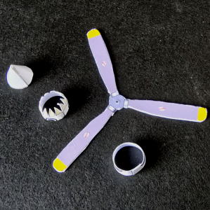 21.プロペラ前、プロペラ後を切り出して裏表に接着します。切り出すときピンなどで中心を通して重ね合わせブレードの一か所を合わせておくと、