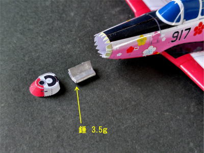 18.胴体前面を胴体に取り付けます。尻もち防止バーを使用しない場合は機首に3.5g程度の錘を入れてください。