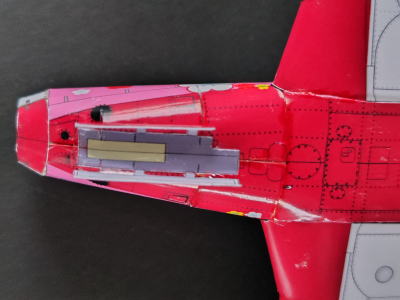 5.主翼中央桁を切り出し折り曲げ、主翼内側中央に接着します。