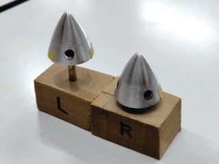 先月、木林さんからスピンナー用にとアルミ材を頂き、今月削って来ました。 この通りです。 その他は、操縦席内を”エィヤ”で終わらせて、胴体を貼りつけました。