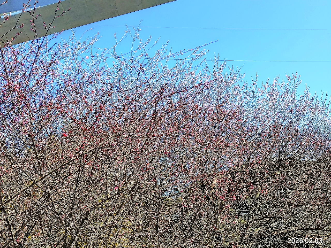 本年は開花が早そうに見えます。2/3にスマホ撮影です