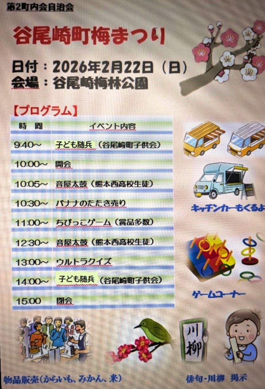 2026.2.22(日)10:00〜15:00の谷尾崎町「梅まつり」
