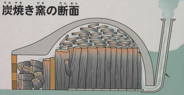 | 火をつけます。全体に火が回ったら火口もふさぎ、炭になるまで数日間焼きます。 |