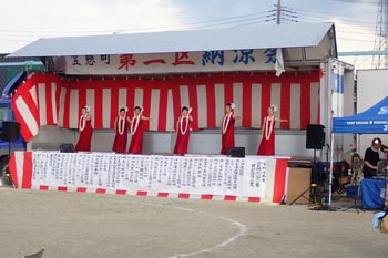 午後5時、消防団のオープニングサイレンが祭りの開会を告げると、ビンゴゲームが行われ、祭りがスタートしました。その後、暑い夏にピッタリなフラダンスや、笠懸いずみ保育園による和太鼓演奏が行われたほか、今年初の出演となる「JOKER TRIBE DANCE STUDIO」によるヒップホップダンスが披露されました。子ども八木節には多くの拍手と声援が送られていました。
