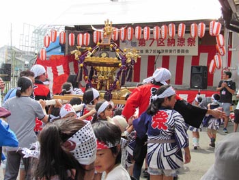 7月27日(日)の笠懸町7区納涼祭は、同区公民館で午後2時の「子どもみこし」から始まり、最後は八木節音頭で、みこしを中心に八木節踊りが午後7時行われました。