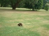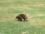 ガイドブックを引用しよう。カモノハシの唯一の仲間である単孔目。体長40センチほどで、その名のとおり背中がトゲに覆われている。外敵が襲ってくると、土の中にもぐって、トゲだけを地上に出し、体を守る。長い粘着力のある舌を使ってアリを食べるおとなしい動物で、オーストラリア全土に生息している。