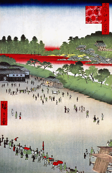 図会2の左手から昌平橋を見る位置です、右奥の丘上の社殿は神田明神