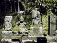不動明王らしき石仏の隣には梵語と草書体でなにやら書き殴った石碑が 置かれている。5秒で判読不能と判断し、不動明王と書いていることにした。 .......後で教えてもらったことだが、識者の言によれば梵語は「如来」を 表しているのだそうだ。