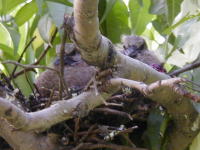 収穫後の草刈りに行って見つけてきました!。7月31日の日誌から2週間が経ち・・・無事に雛が2羽!、親鳥2羽も近くから監視しています。カラスに食べられなくて良かったねぇ。巣の下で、エンジン全開で草刈りしている私を見つめて・・・初 『鳩が豆鉄砲を食ったよう・・・』 でしょうか?