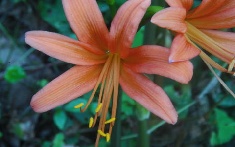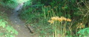 | 2006年7/16 早朝 水無鍾乳洞から、水無林間歩道分岐まで歩いてみた。日当たりの良い所は花を付けているが まだ細い茎のままか、殆ど地面から顔を出していない。見頃は今月末か。 | ||||||||